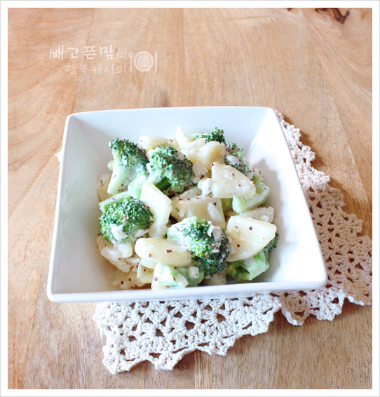 Transfer the perfectly mixed broccoli and potato salad to a serving dish. Present it beautifully. This salad is wonderful served alongside warm rice or bread!