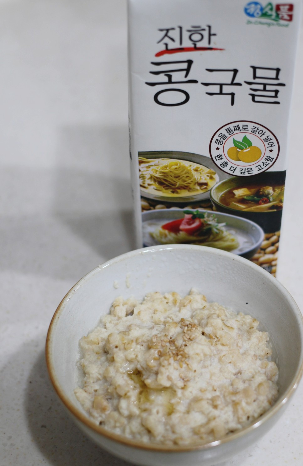 Jeongseafood Soy Milk is known for its smooth and rich taste, making it versatile for various dishes. Besides this porridge, it’s also excellent for making refreshing soy milk noodles (Kongguksu).