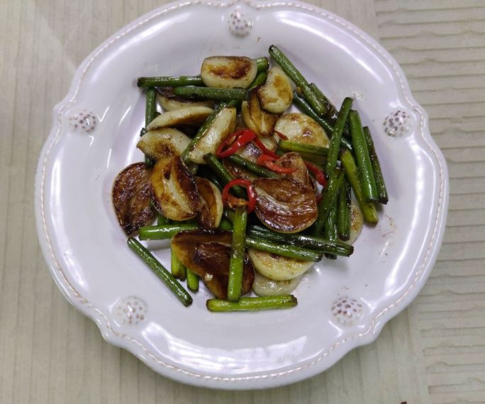 Lightly sauté the garlic scapes just enough to remove their raw pungency. Then, add the balsamic vinegar and fish sauce. Stir-fry until the sauce coats the garlic scapes and garlic, allowing the flavors to meld. The balsamic vinegar adds a touch of sweet and sour, while the fish sauce provides a savory depth.