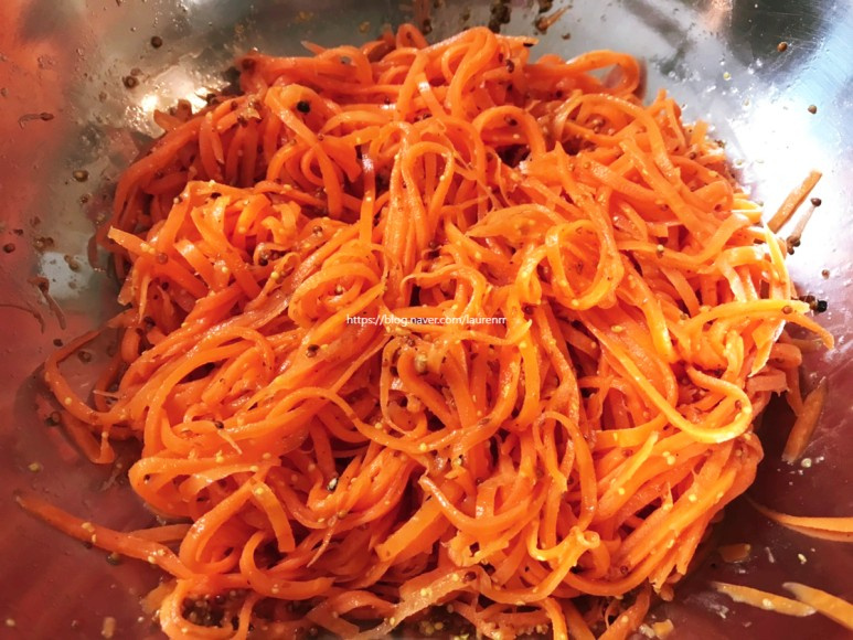 Squeeze out as much liquid as possible from the julienned carrots by hand. You can also place them in a fine-mesh sieve and press down, or use paper towels to absorb the excess moisture. Thoroughly draining is crucial for the best texture.