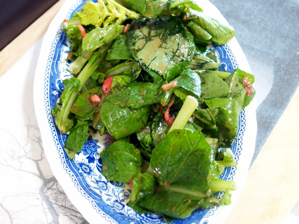 This is a refreshing and sweet young radish salad recipe made with fresh, seasonal young radish leaves. It’s delicious with any fruit preserve, such as yuzu, quince, or apple preserve. Using strawberry preserve specifically adds a delightful sweet and sour flavor profile with beautiful color contrast. Enjoy this simple yet flavorful salad, perfect as a side dish for pork cutlets, for a satisfying meal. Experience the fresh crunch of young radish combined with the sweetness of fruit preserves – a perfect appetizer to awaken your appetite during the summer. Let’s make this quick and easy salad!
