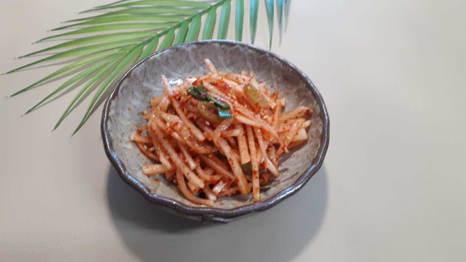 This finished radish salad has a wonderful crisp texture and a perfect balance of sweet and tangy flavors. It’s delicious right away, but chilling it in the refrigerator for a short while will enhance its refreshing taste. Serve it over rice for a bibimbap-style meal, or pair it with grilled meats to cut through the richness – it’s an exceptional side dish!