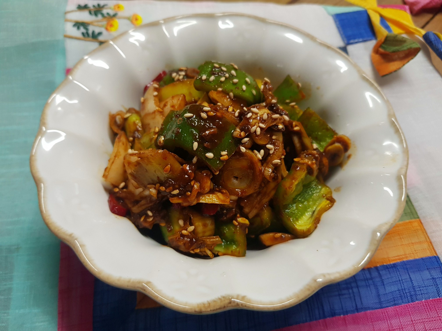 Enjoy this delightful bell pepper namul, made even better with its satisfying crunch!