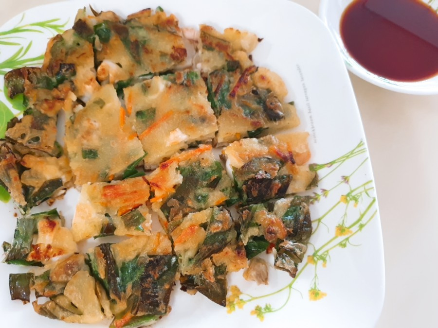 Pancake Batter Ingredients- 1 cup Pajeon (savory pancake) flour (approx. 100g)