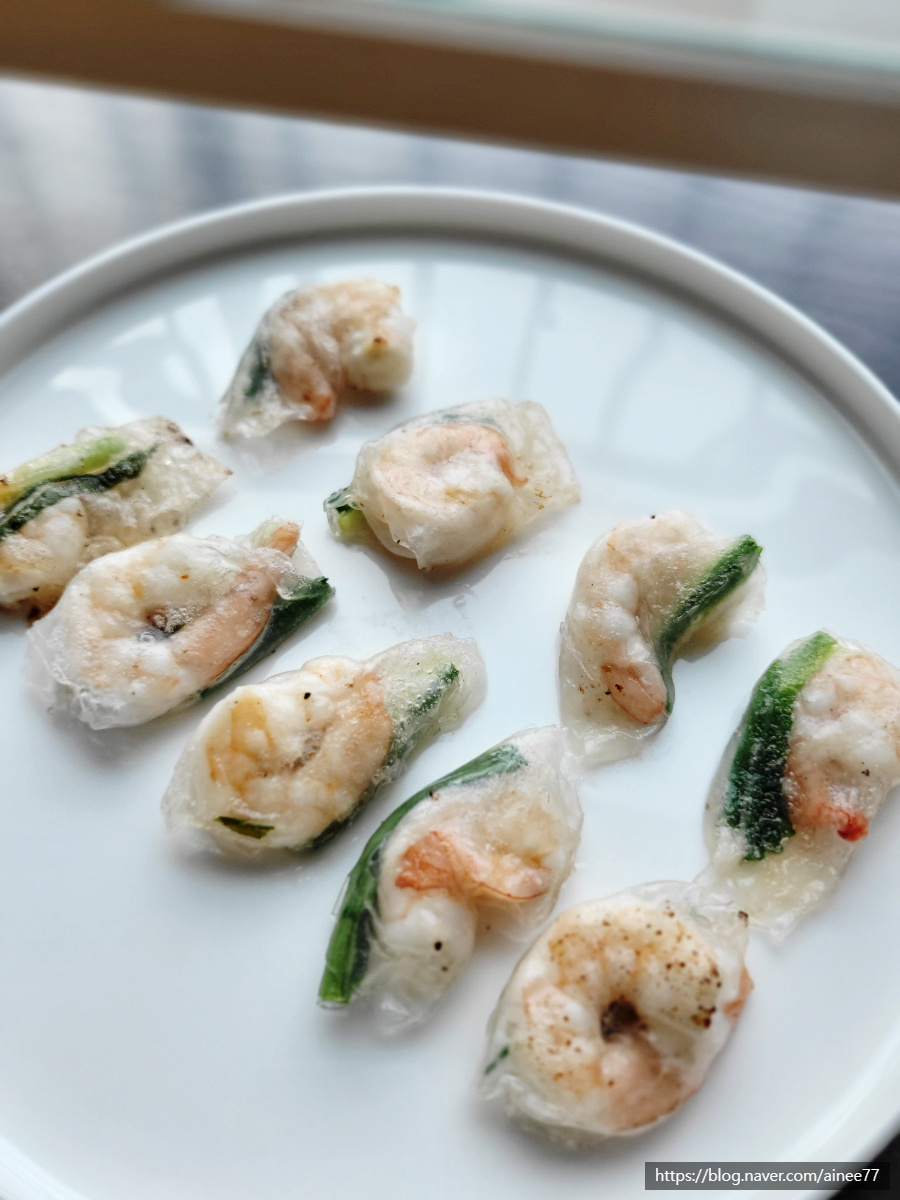 When you wrap shrimp and scallions inside rice paper and pan-fry them, they taste like delicious mini seafood pancakes! This dish is not only simple but also impressively elegant, making it a perfect appetizer or special treat.