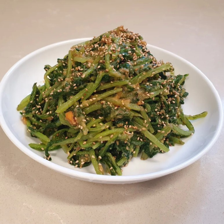 Today, I received some tender young radish (yeolmu) from my mother! While it’s delicious wrapped with pork belly, I’ve prepared a seasoned radish namul today, using a soybean paste dressing enhanced with blended onion. The natural sweetness of the onion complements the savory depth of the soybean paste, creating a truly irresistible side dish.