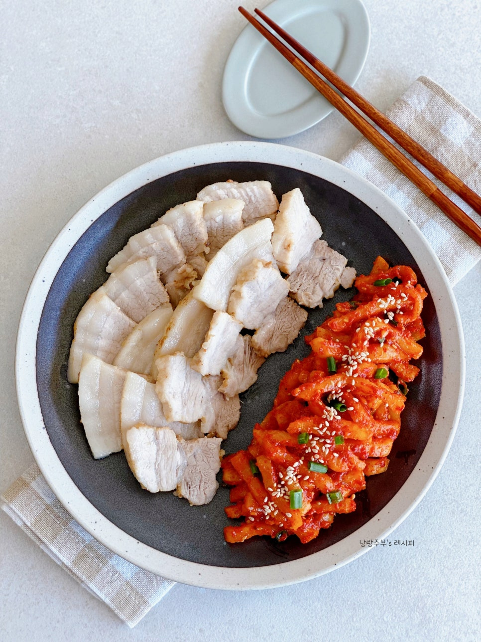 Here’s a recipe for Bossam Radish Kimchi, which pairs wonderfully with boiled pork (Suyuk). When radishes are in season and delicious, this radish kimchi, with its refreshing, salad-like quality, is incredibly tasty on its own! The satisfying crunchy texture is truly captivating. Try this spicy radish kimchi that complements meat so well. ^^