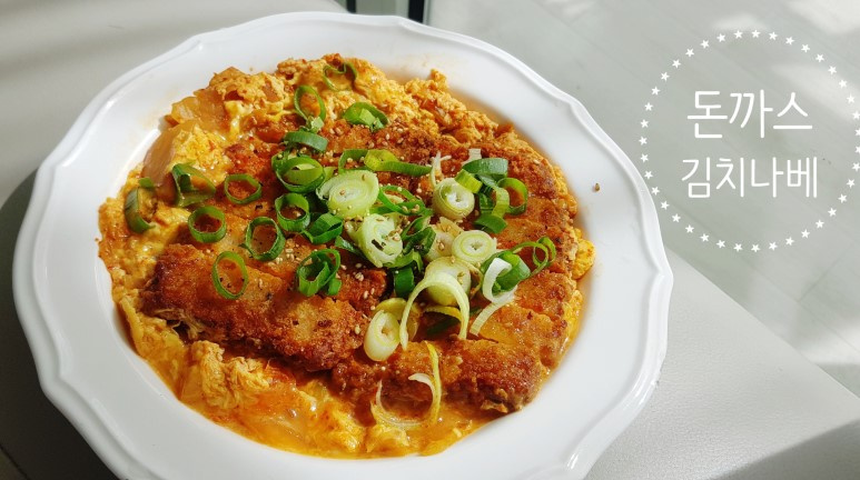 When the egg is about 80% cooked and still slightly soft, sprinkle the diagonally sliced green onions over the top. Cover the pot and let it simmer briefly until the egg is fully cooked. Serve the Tonkatsu Kimchi Jjigae directly from the pot while hot, or present it in a beautiful serving bowl for an even more appetizing look.