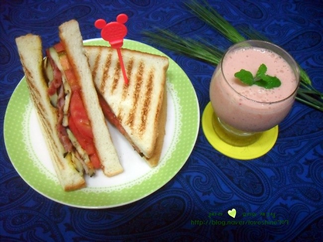 Introducing our ‘Eggplant Toast,’ a savory sandwich that’s satisfying enough to be a meal on its own! The delightful combination of tender eggplant, crispy bacon, and fresh tomato makes this sandwich both delicious and nutritious. Enjoy it with a refreshing strawberry smoothie made from blended strawberries and milk for a complete and hearty meal. Let’s make this healthy and tasty Eggplant Toast together!