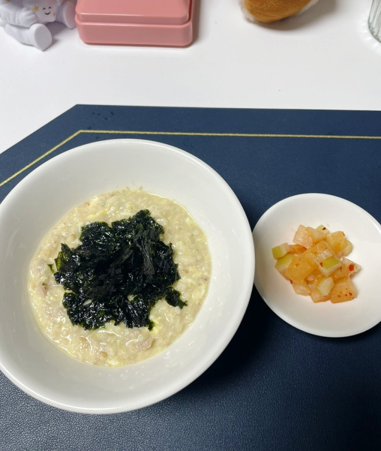 Transfer the finished Tuna, Egg, and Oatmeal Porridge to a bowl. Garnish with a sprinkle of shredded seaweed and 1/2 Tbsp of toasted sesame seeds. Enjoy your flavorful and nutritious meal that’s perfect for a healthy diet!