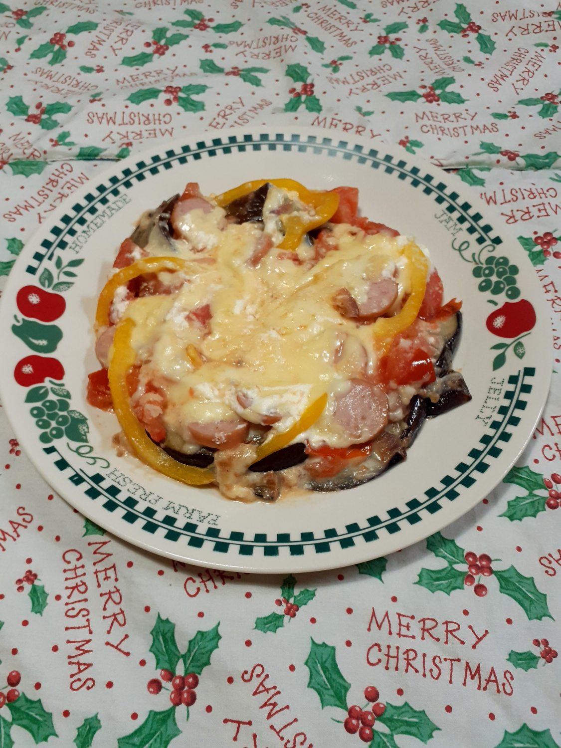 Introducing a delightful one-pan pizza featuring the moistness of eggplant and the savory flavor of sausage. This pizza can be ready in just 10 minutes with simple ingredients, making it perfect for busy weeknight dinners or as a fun snack for kids. Enjoy a wonderful homemade pizza experience, all cooked in a single pan!