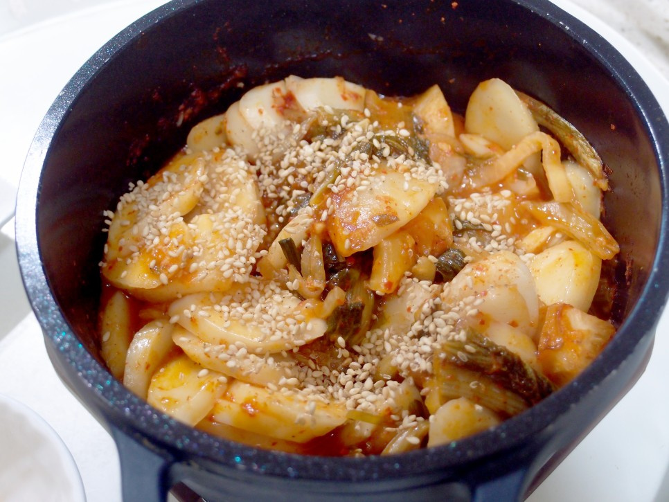 Flavorful Kimchi Tteokbokki with Young Napa Cabbage Kimchi