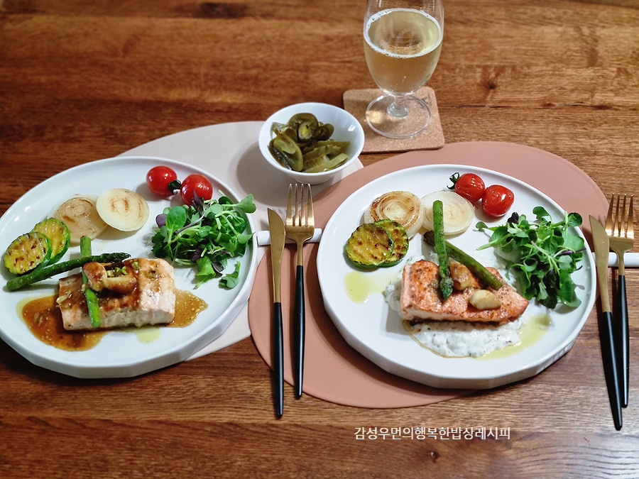Introducing a wonderful salmon steak recipe to add elegance to your guest invitations or special home parties. Try pan-seared salmon, crispy on the outside and tender on the inside, served with a tangy tartar sauce or a sweet and savory teriyaki sauce. Garnished with fresh vegetables and a flavorful basil pesto oil, this dish transforms into a restaurant-quality masterpiece. This simple yet elegant salmon steak will surely set a celebratory mood. Let’s make it now!