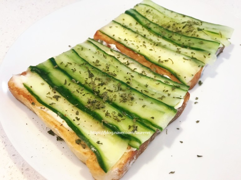 Finally, sprinkle some parsley flakes on top for a beautiful finish. Your super simple and delicious cucumber sandwich is now complete! Enjoy it with your tea or as a light meal.