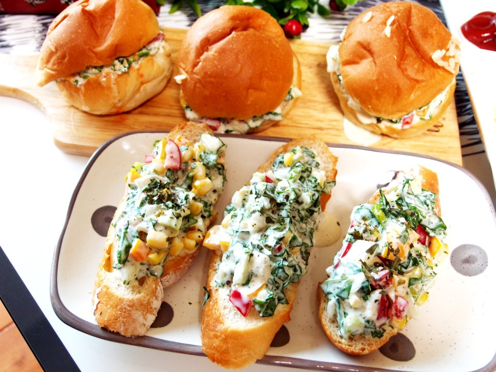 Experience the vibrant taste of spring with this “Matnam Restaurant” inspired Spring Cabbage Sandwich recipe! Using fresh, seasonal spring cabbage (bomdong), this sandwich is perfect for kids’ snacks or a light meal. It boasts a refreshing flavor and a delightful crispiness. We’ve replaced refined sugar and vinegar with condensed milk, honey, and lemon juice for a naturally sweet and tangy profile. Delicious on baguette or morning rolls, this versatile recipe can also be made with other leafy greens. Enjoy the delightful crunch of vegetables and corn combined with a creamy, zesty dressing!