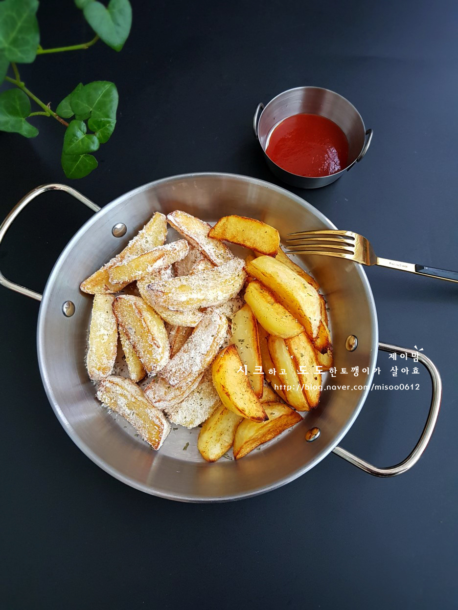 Once par-boiled, drain the potatoes and let them cool slightly. While still warm, cut them into your desired fry shape, about 1-1.5 cm thick. Cutting them while warm makes them easier to handle.
