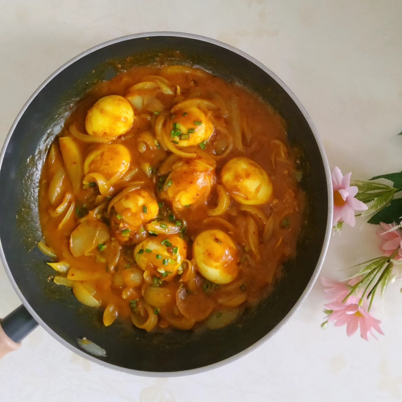Voilà! Your delicious ‘Fried Egg Curry,’ made with love for your family, is ready to be enjoyed. Serve it generously over a bed of rice for a truly satisfying meal.