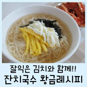 Now, all the preparations are complete! Place the chewy noodles in a warmed bowl, then ladle the deeply flavored, hot broth over them. Finally, artfully arrange the prepared egg garnish on top. Your mouthwatering, golden recipe Janchi Guksu is ready! Enjoy your meal!