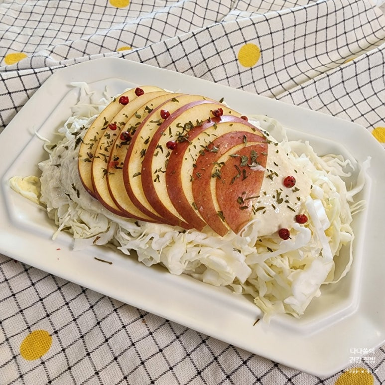 Finally, thinly slice the apple and arrange the slices attractively on top of the salad. The apple’s sweet and tart notes will further enhance the overall flavor profile of the salad. Your delicious Sweet Potato Tofu Salad is now ready to be enjoyed! Savor this healthy and convenient meal.