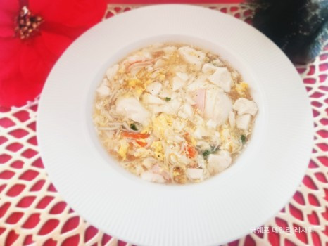 Gradually add the cornstarch slurry, a tablespoon at a time, while stirring continuously, until the soup reaches your desired thickness. Be careful not to add too much at once, as it can make the soup too thick. Once the soup has thickened, turn off the heat. Finish with a pinch of black pepper, and your delicious Silken Tofu and Crab Stick Soup is ready to enjoy!