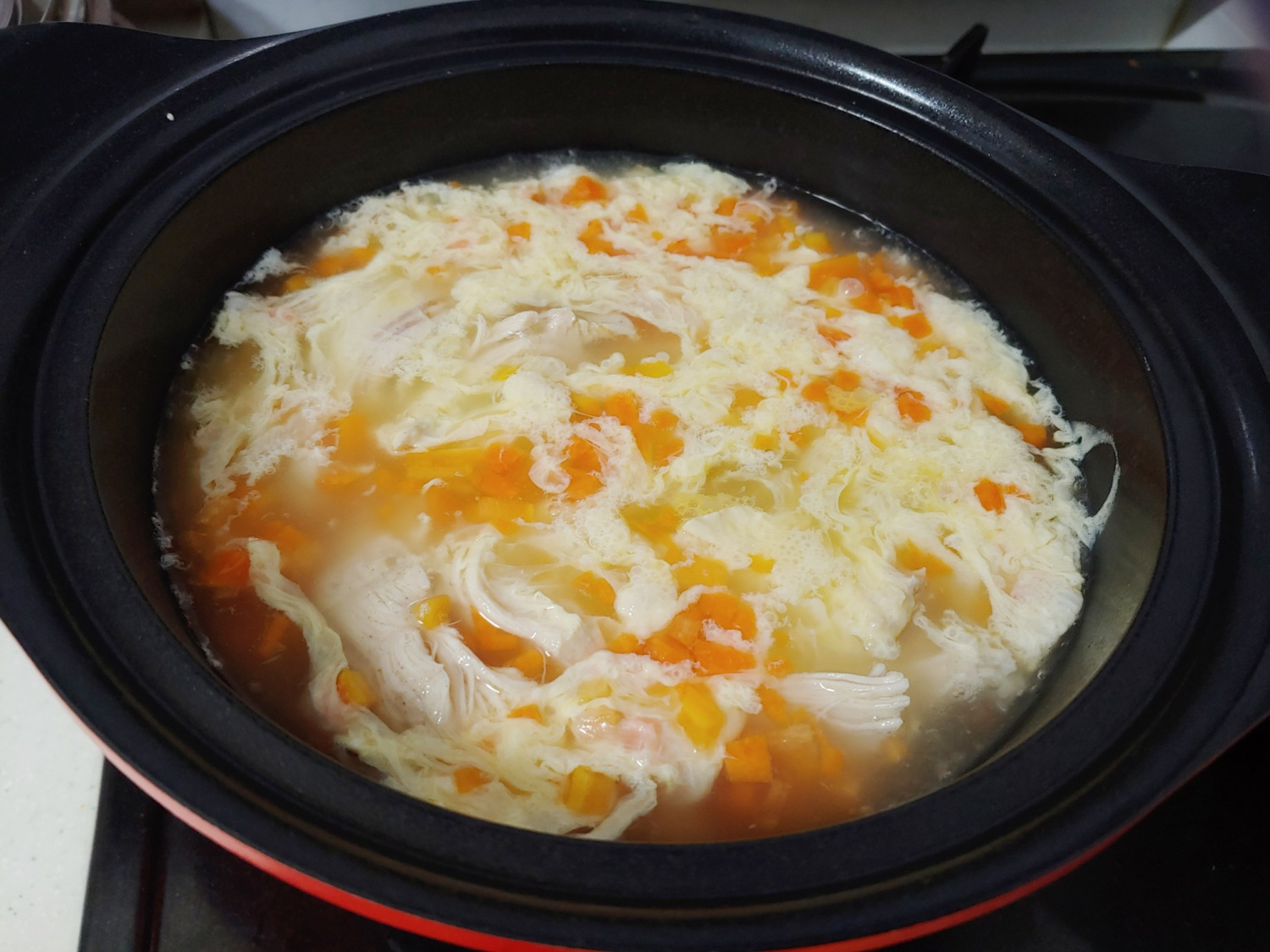Add the shredded chicken to the pot and let it simmer together. The chicken will release a rich flavor that enhances the soup.