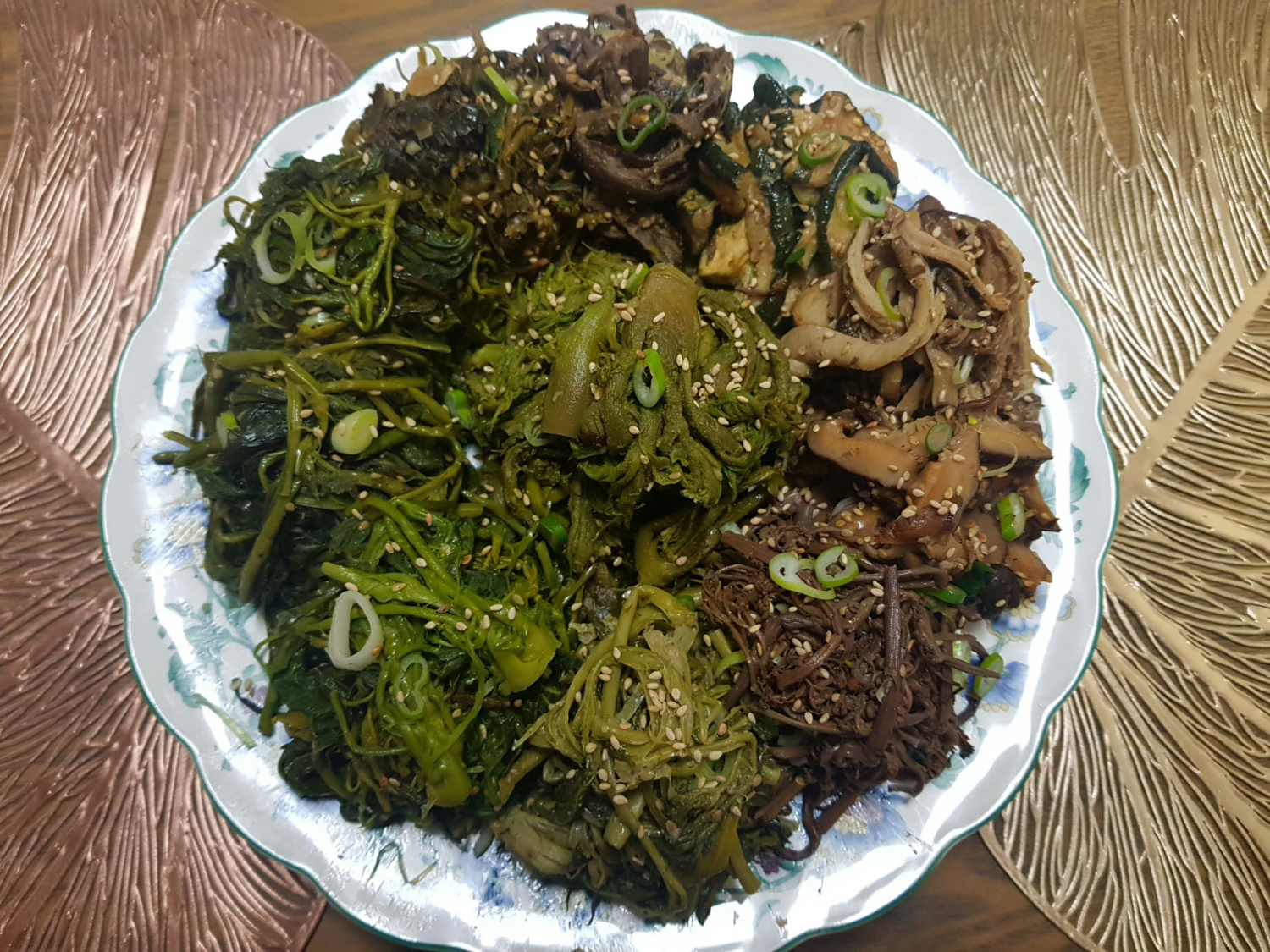 We will prepare and stir-fry a total of 11 varieties of namul, including Chwinamul, Eomnamusoon, Nungeunghma, Daraesoon, Dureup, Hobakgoji, Gajinamul, Gosari, dried shiitake, and dried enoki mushrooms, in a simple stir-fry method.