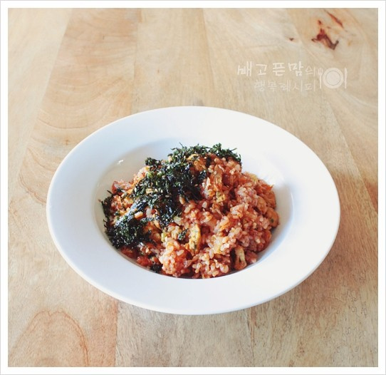 Finally, stir everything together once more to ensure it’s well combined. Transfer the finished Mandu Kimchi Fried Rice to a serving bowl. Instead of a fried egg, generously sprinkle commercial gim-jaban (seaweed flakes) over the top. The crispy texture and savory taste of the gim-jaban pair wonderfully with the kimchi fried rice. Enjoy your delicious meal!