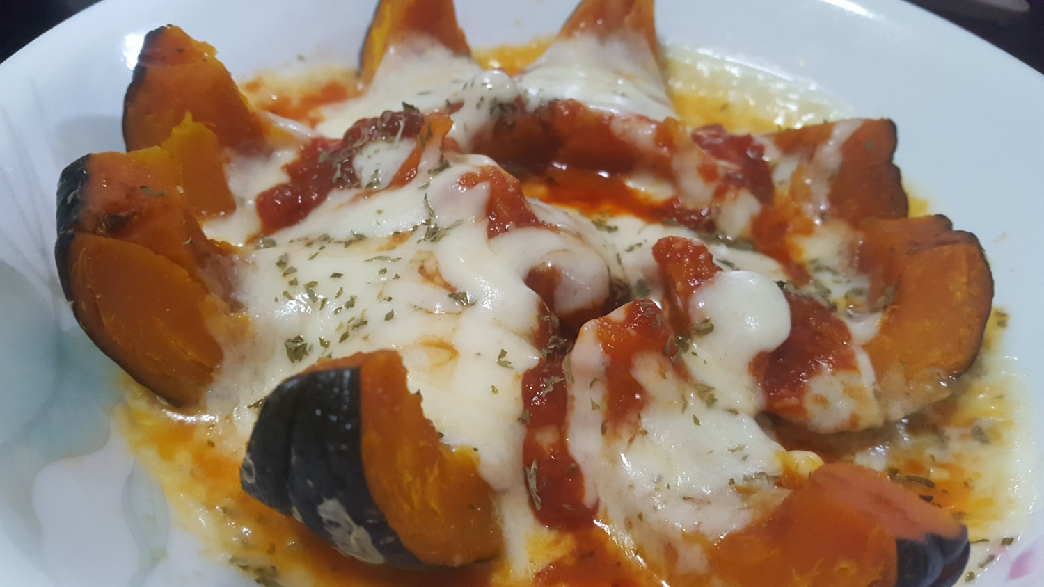 Prepare 1 jam sweet pumpkin, 1 bag of mozzarella cheese, and 150g of spaghetti sauce.