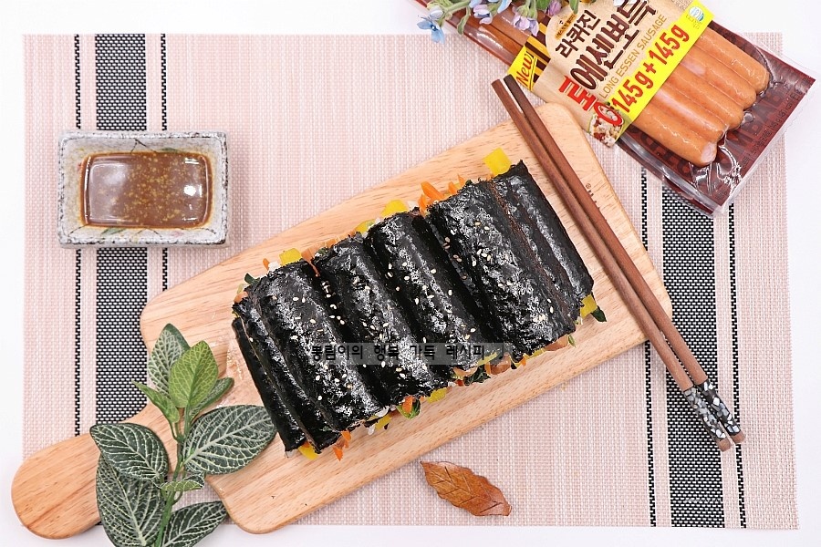 While mini gimbap with just spinach, carrots, and pickled radish is already delicious, adding the juicy ‘La Cuisine’ sausage doubles the flavor! The savory taste and rich juices of the sausage enhance the flavors of the rice and vegetables, making it incredibly tasty. This combination is highly recommended!