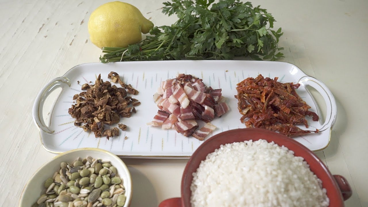 Rinse the rice as you normally would. In your rice cooker pot, combine the rinsed rice with the sliced bacon, sun-dried tomatoes, porcini mushrooms, and peas. Squeeze the juice of half a lemon over the mixture for a touch of brightness. Add water according to your rice cooker’s instructions for cooking rice. Select the cooking mode and start. Once the rice is cooked, fluff it gently and garnish with the chopped fresh parsley for a beautiful finish. Enjoy your flavorful mixed rice!