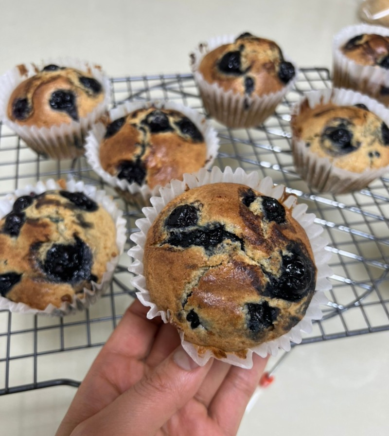 The baked muffins will have a wonderfully rich and vibrant blueberry color. Let them cool on a wire rack before enjoying. They are delicious warm, but also retain their moisture wonderfully for the next day.