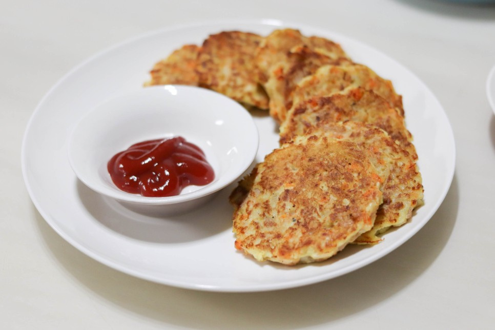 Add 1/2 tablespoon of minced garlic to eliminate any fishy odor from the tuna and enhance its savory notes. Mix all the ingredients thoroughly. If the batter seems too wet, you can add another tablespoon of pancake mix to adjust the consistency. Gently kneading the mixture with your hands will help all the ingredients meld together beautifully.