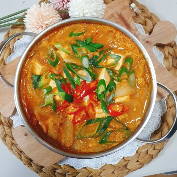 Introducing the quintessential Korean home-cooked dish: savory Cheonggukjang stew. Made with homemade fermented soybeans, it boasts a deep and rich flavor. Combined with various vegetables, pork, and tofu, it’s a powerhouse of taste and nutrition. Whip up a quick batch with leftover vegetables from your fridge, and experience the magic of a meal that disappears in an instant! Enjoy a hearty meal with the authentic taste of Mom’s Cheonggukjang stew!