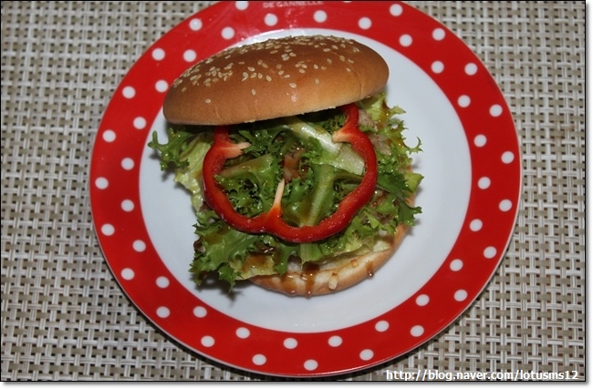It’s time to assemble! Layer the lettuce, patty, and a generous drizzle of Bulgogi sauce onto the bottom bun. Feel free to add chicory or other desired vegetables for extra texture and flavor. Doesn’t this homemade Bulgogi Burger look absolutely mouthwatering? Enjoy the delicious taste of your home-cooked masterpiece!