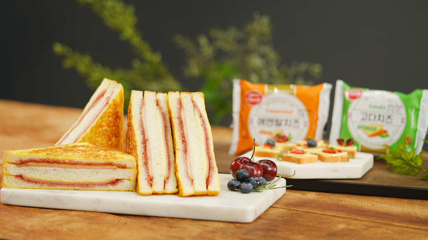 Introducing the Montecristo sandwich, perfect for making any day feel special! The classic combination of ham and cheese is always a winner, but by adding the deep flavors of Gouda and Emmental cheese, you can transform it into a gourmet brunch experience. Using Seoul Milk’s sliced cheeses (Gouda and Emmental) makes it incredibly easy to incorporate their rich taste without any fuss. Enjoy a crispy exterior and a lusciously sweet and moist interior with this delightful Montecristo sandwich – try making it today!