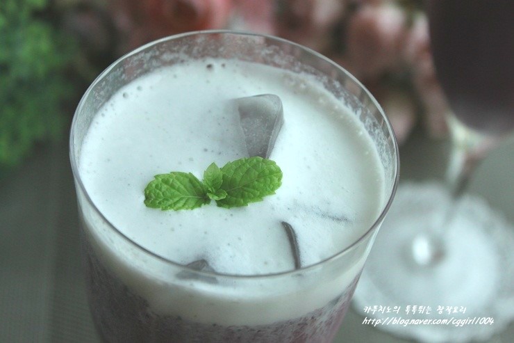 Pour 200cc of cold milk over the bokbunja berries in the blender. Using cold ingredients helps keep the drink refreshingly chilled.