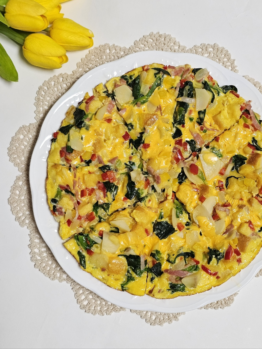 Create a nutritious and delicious frittata using fresh spinach and an abundance of vegetables. This dish is perfect as a side for children or a delightful brunch option. Learn how to make this easy and satisfying spinach frittata step-by-step.