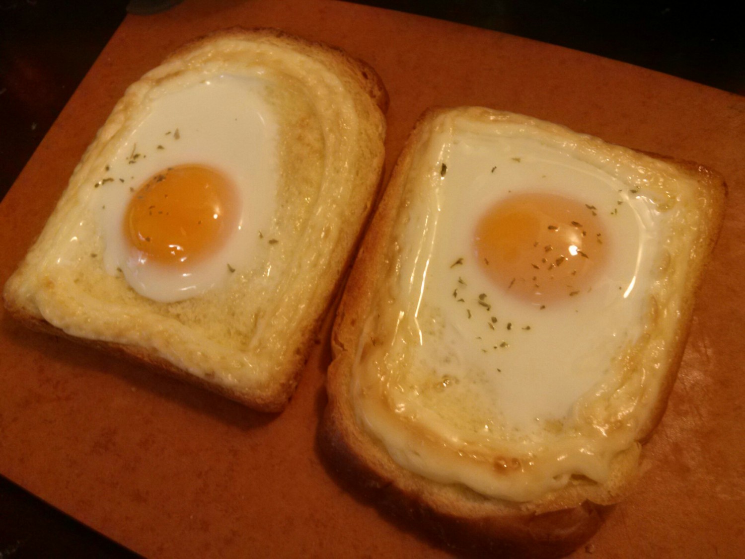 Carefully crack an egg onto the mayonnaise-covered bread. You can either leave the yolk intact for a runny center or gently break it so it spreads slightly. Sprinkle a pinch of dried parsley flakes over the egg for a touch of color and aroma. (Tip: Mayonnaise has a natural saltiness, so you likely won’t need any additional salt.)