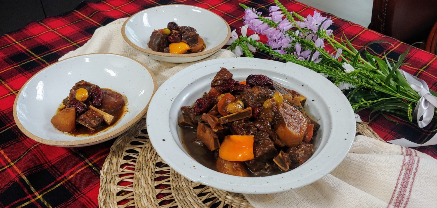 This special occasion braised beef rib dish, enriched with healthful black garlic extract and whole black garlic, offers a feeling of well-being. Enjoy a delightful meal with your loved ones!