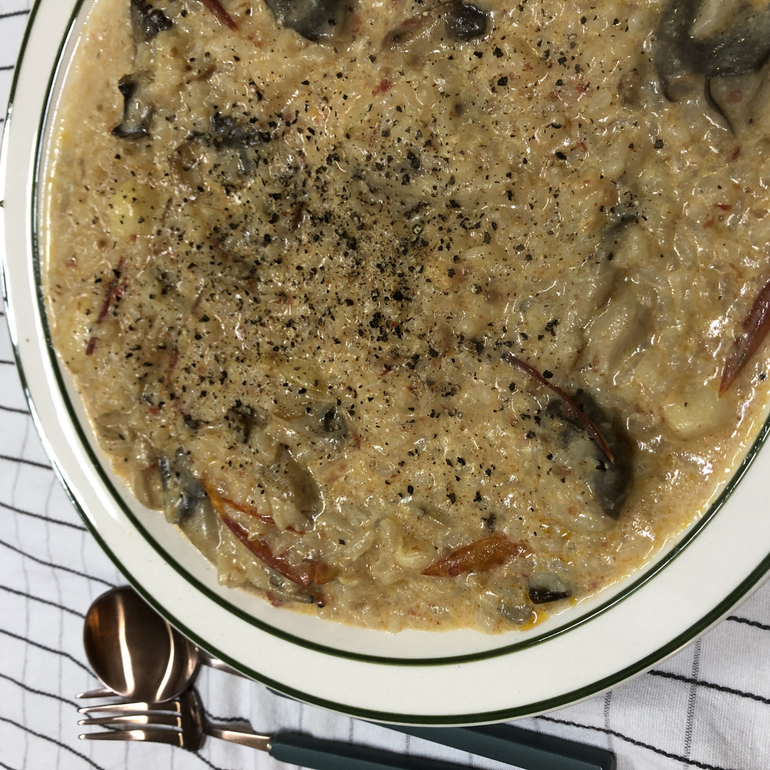Indulge in this creamy risotto, a delightful dish featuring the rich flavors of mushrooms and a velvety cream sauce. This recipe is simple yet elegant, perfect for a satisfying meal. The chewy texture of the king oyster mushrooms adds an extra layer of enjoyment to the risotto.