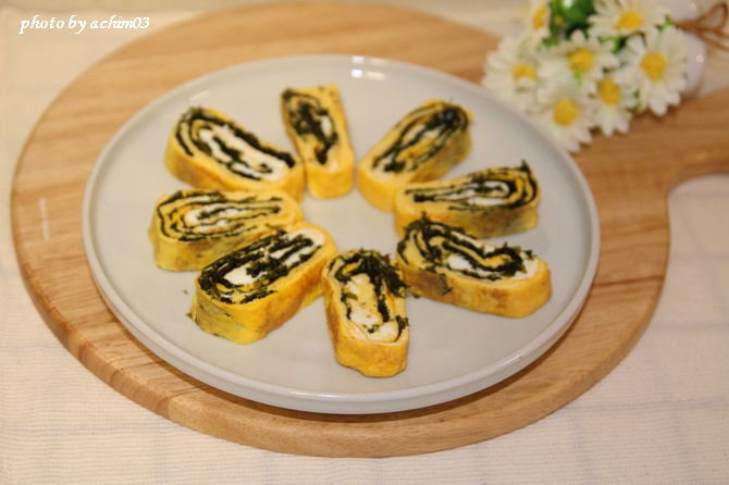 Ggubchang gim, harvested only for a short period, gets its name because the thin seaweed sheets clump together, resembling ‘ggubchang’ (intestines). Let’s make a delicious and fluffy rolled omelet using this special gim! The fragrant notes of the gim combined with the savory taste of eggs create a delightful dish perfect for kids’ meals or as a side with drinks. The preparation is also simple, so follow along now!
