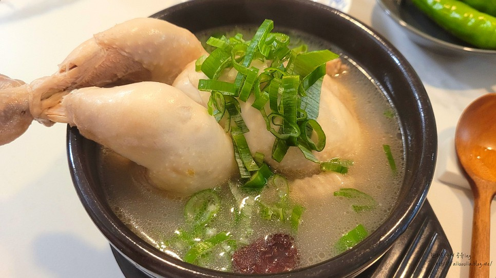 After simmering for about an hour, the Samgyetang broth will have become beautifully milky and rich, indicating a deep, savory flavor. The chicken will be perfectly cooked and tender, and the glutinous rice will be soft and fluffy. Serve hot for a truly restorative and delicious meal.