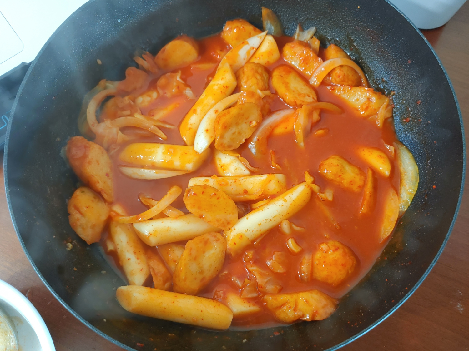 With all ingredients in the pot, reduce the heat to medium and let it simmer. Cook for about 5-8 minutes, or until the onions and cabbage become translucent and tender, and the rice cakes have absorbed the sauce well. You can adjust the simmering time to achieve your desired broth consistency.
