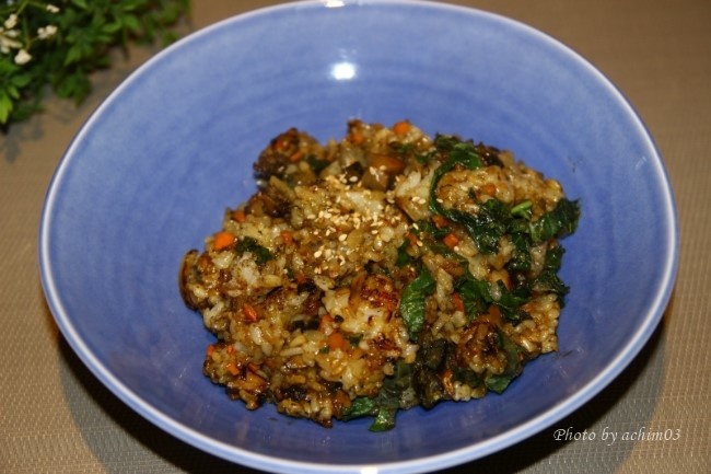Season the fried rice using the braising liquid from the abalone. Add 2 tablespoons of the braised abalone liquid and mix well to distribute the flavor evenly. Finally, stir in the thinly sliced perilla leaves for a fresh, aromatic finish. Drizzle a few drops of toasted perilla oil (or sesame oil) for an extra layer of nutty flavor. Your delicious abalone fried rice is now ready! The chewy texture of the abalone combined with the fragrant aroma of the perilla oil makes this dish truly exceptional. Enjoy it best when made with freshly cooked warm rice.
