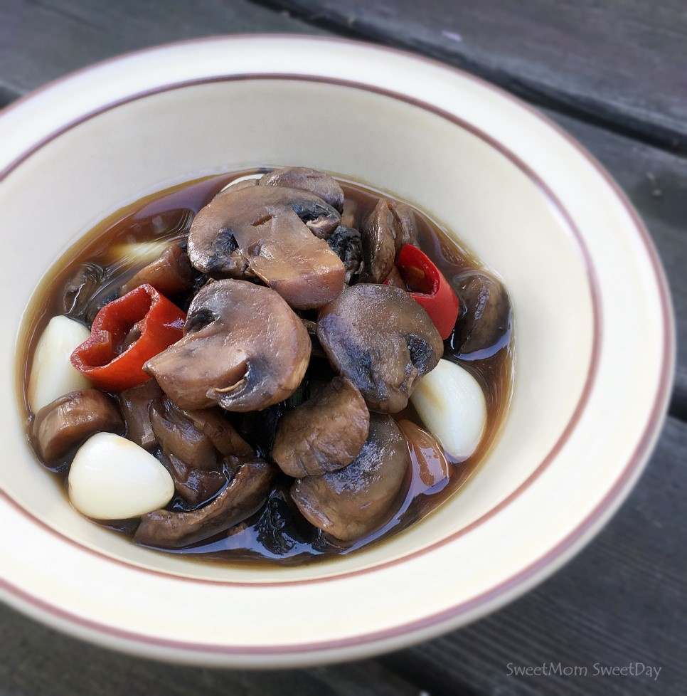 Ta-da! Your delicious marinated button mushrooms are ready. They are perfectly savory, subtly sweet, and have a pleasant kick from the chili peppers that will tantalize your taste buds. The sweet pickled garlic cloves are also a wonderful treat! Even better, the leftover marinade, after the mushrooms are removed, transforms into a versatile ‘flavor-packed soy sauce base’! Use it in soups or braised dishes to add a richer depth of flavor. This recipe is simple, incredibly useful, and nothing goes to waste. How about adding these amazing marinated mushrooms to your dinner table tonight?