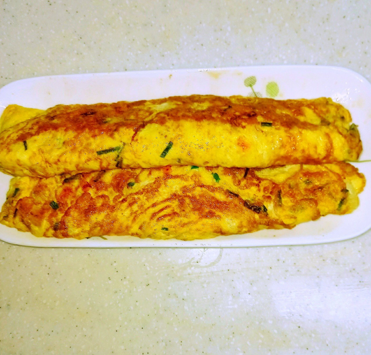 Once the omelet is fully rolled, let it cool down a bit before slicing. If you try to slice it while it’s too hot, the shape might fall apart. Allow it to cool for a few minutes until it’s warm but firm, then slice into bite-sized pieces (about 1.5cm thick) for a neat and attractive presentation.