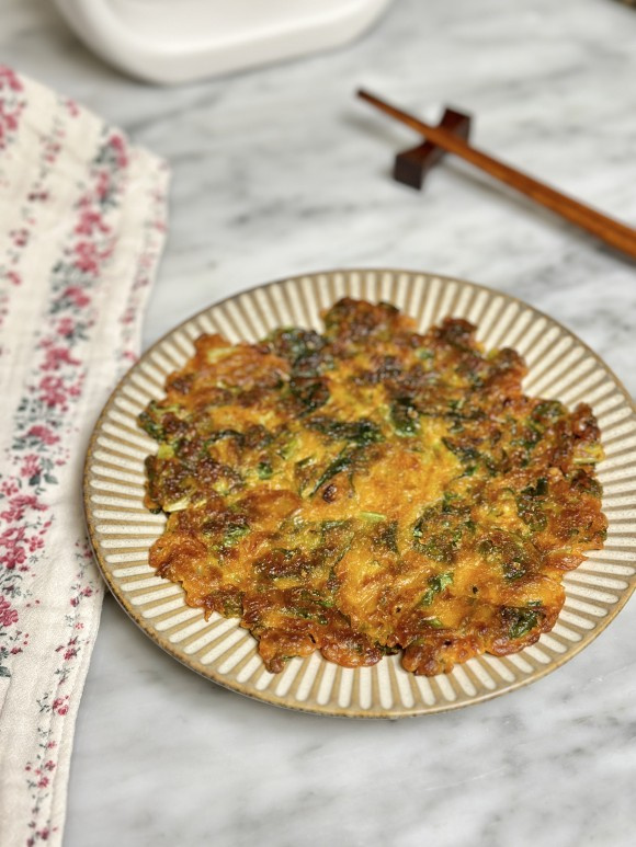 Have you ever heard of ‘Jangtteok’? In Daegu, a region in South Korea, pancakes made with gochujang (Korean chili paste) are commonly called Jangtteok, Gochujang-tteok, or Gochujang-jangtteok. Typically, these savory pancakes are made by adding chives or chili peppers to the gochujang-infused batter, and sometimes mugwort is added for a unique flavor. This dish was a familiar comfort food from my hometown in Daegu, but I discovered it was quite unfamiliar to people from other regions once I became an adult. I still remember the surprise on my partner’s face the first time I made it for them, mentioning they had never tasted anything like it. Despite its unique flavor, they quickly fell in love with it, and now it’s a dish they request often! Today, I decided to use up a surplus of lettuce at home by incorporating a generous amount into our Gochujang Jangtteok. The result is a wonderfully soft and savory pancake with a delightful hint of freshness from the lettuce.