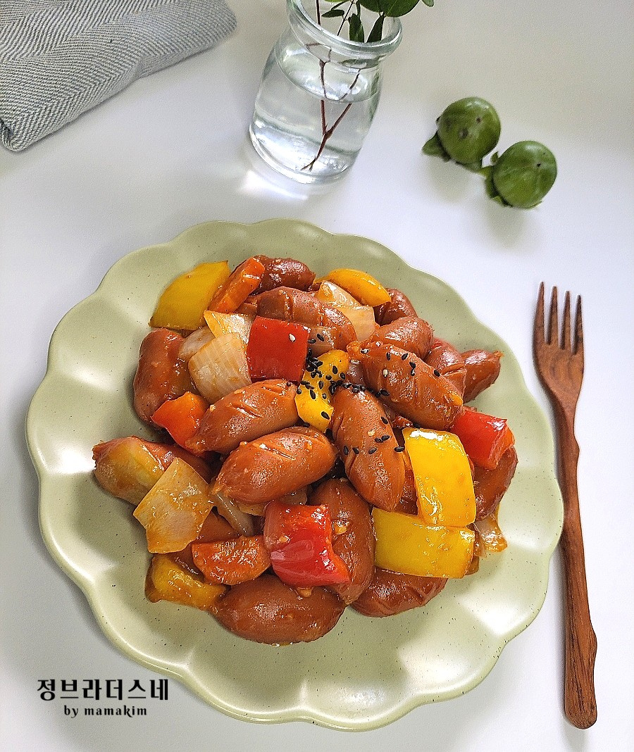 To remove excess oil and achieve a cleaner taste, briefly blanch the Vienna sausages in boiling water for about 20 seconds. This also helps prevent them from bursting during cooking and allows the sauce to adhere more easily.