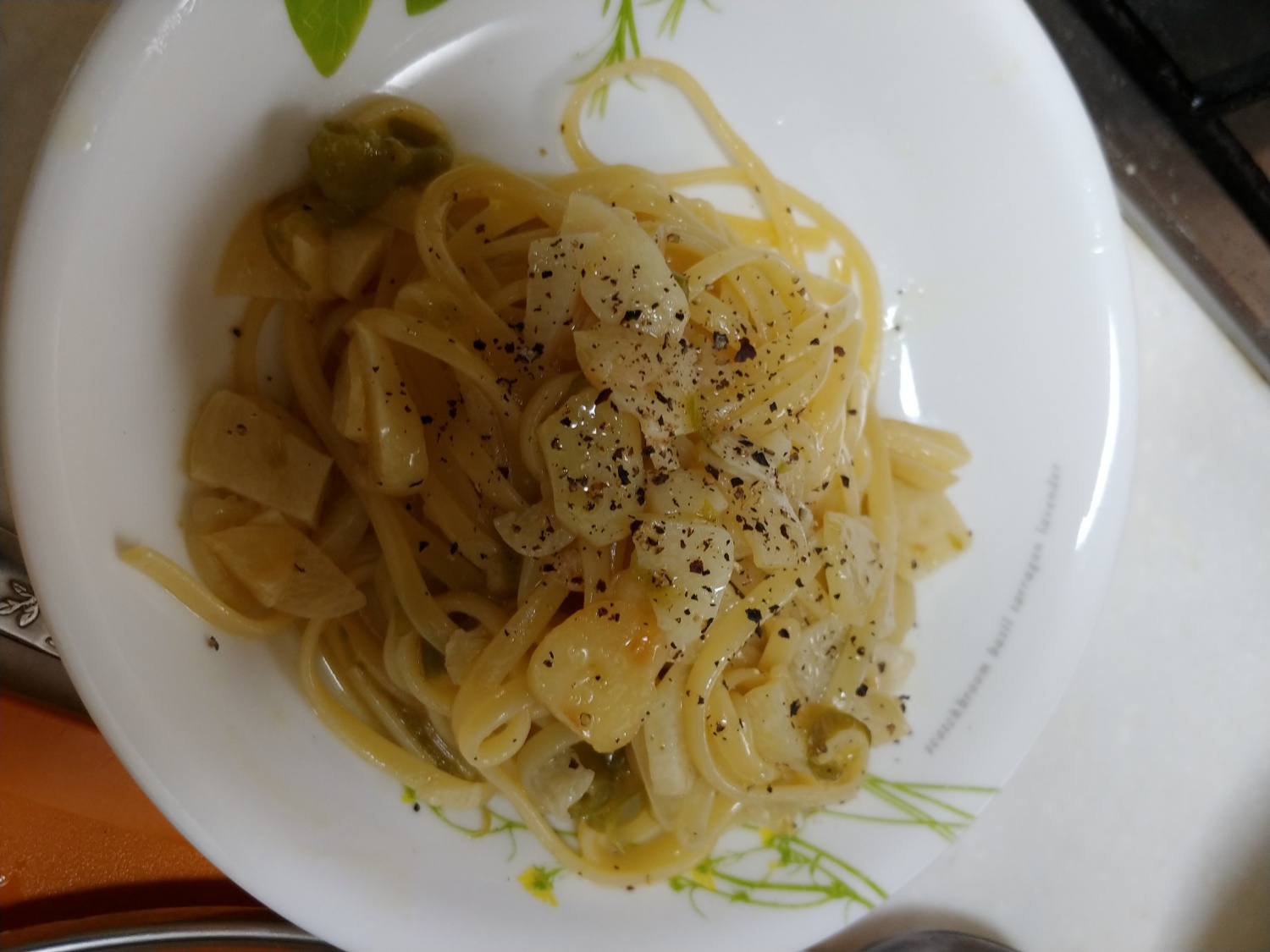 Transfer the finished Aglio e Olio pasta to a plate. Grind fresh black pepper generously over the top according to your preference, and enjoy this wonderfully simple yet deeply flavorful dish!