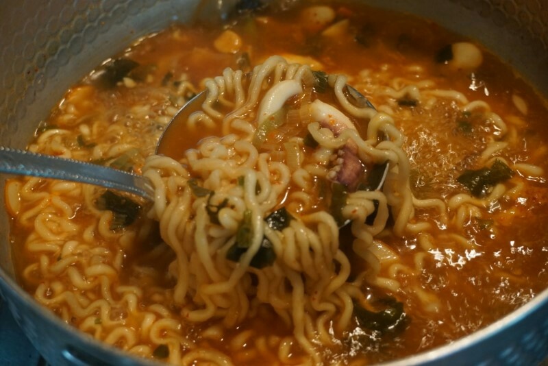 Continue to boil until the noodles are cooked to your liking. Your delicious jjamppong ramen is almost ready!